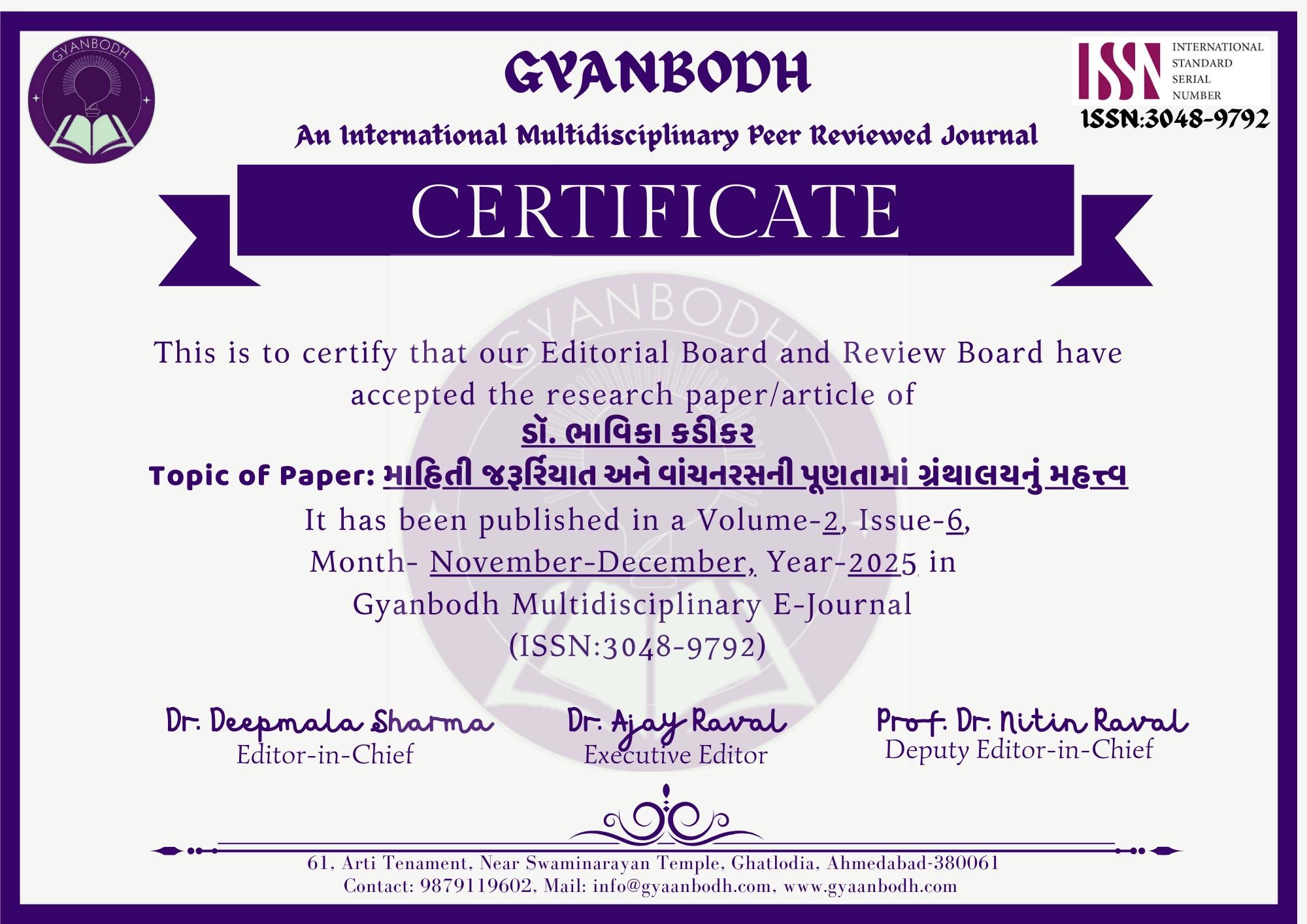 ગોહેલ યાજ્ઞિક ધીરજલાલ & ડૉ. જયવીર પી. પંડ્યા |