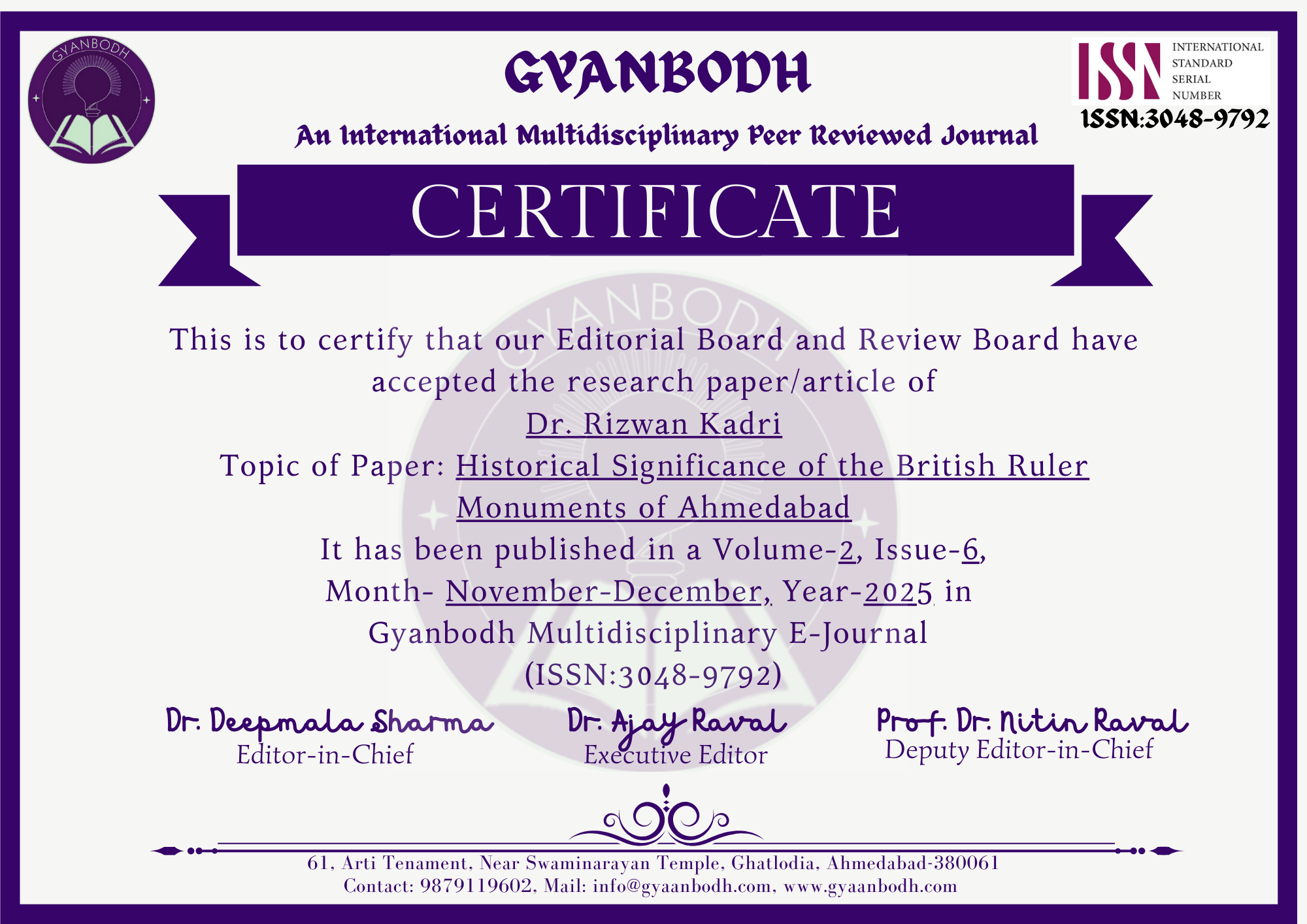 Mounish Bhavsar & Dr. Rizwan Kadri |