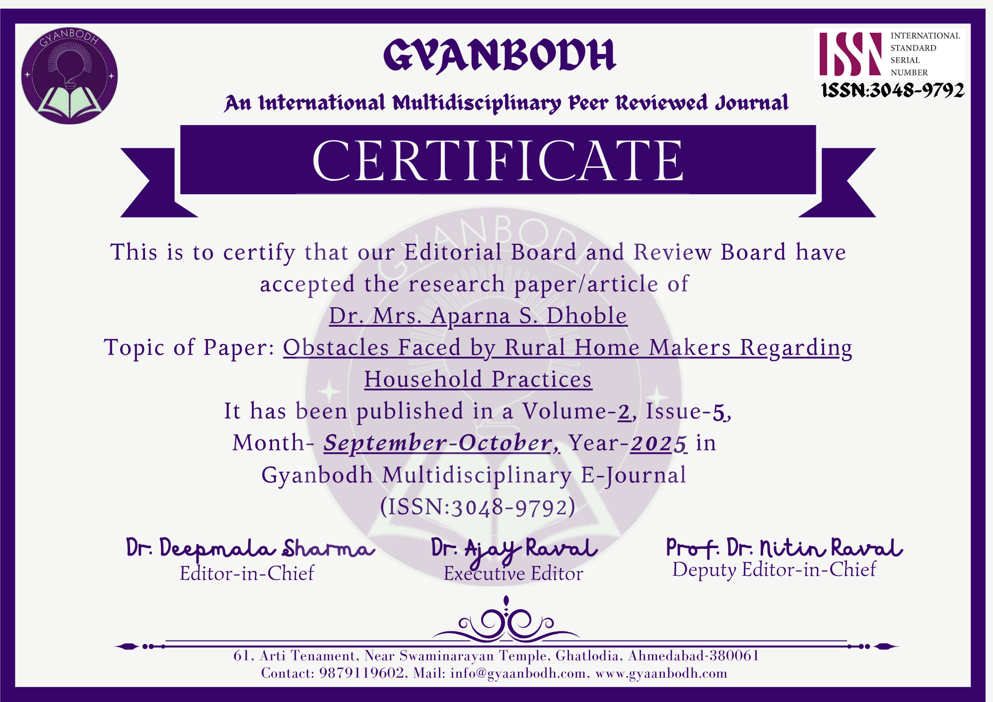 Obstacles Faced by Rural Home Makers Regarding Household Practices |