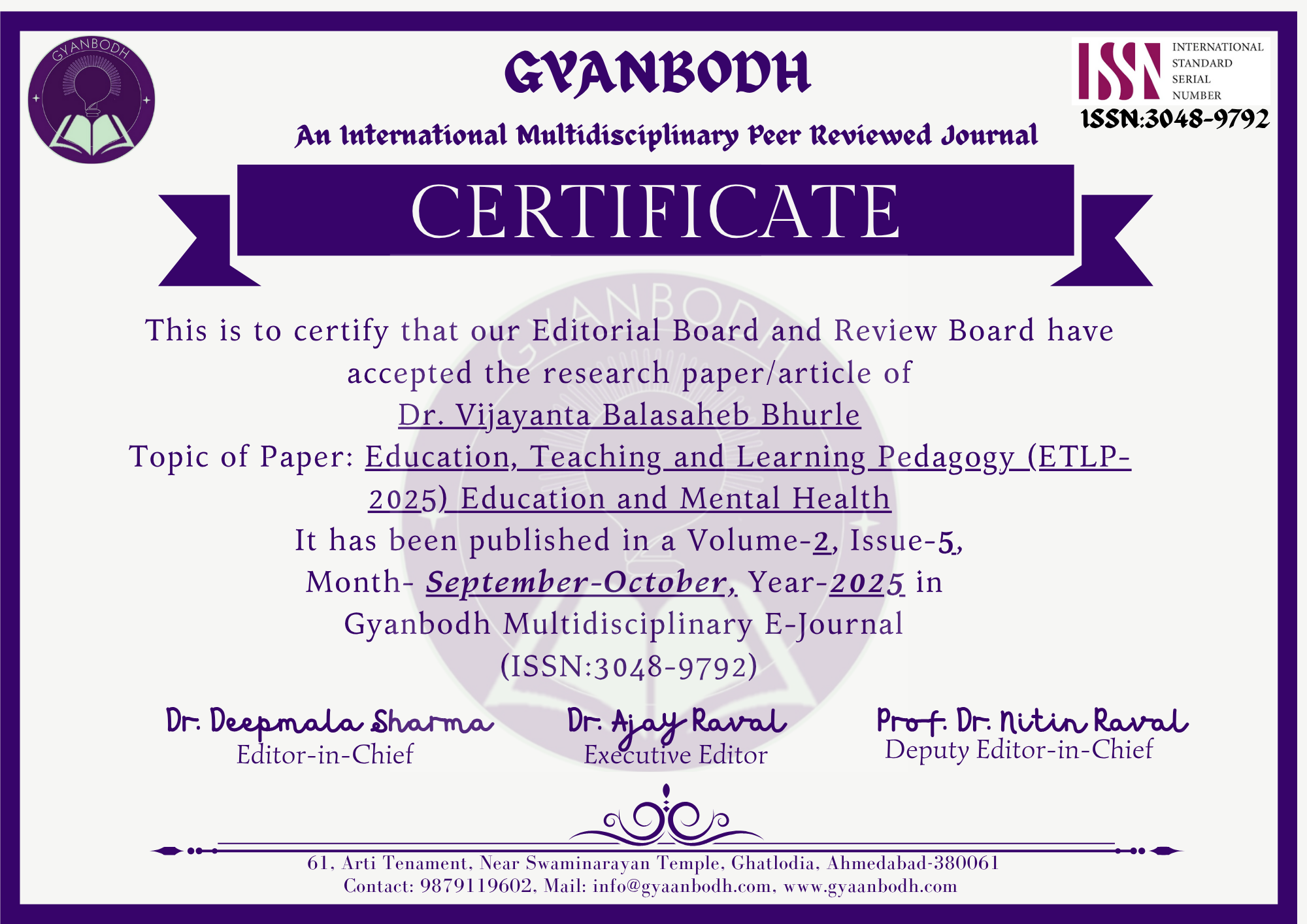 Education, Teaching and Learning Pedagogy (ETLP- 2025) Education and Mental Health |
