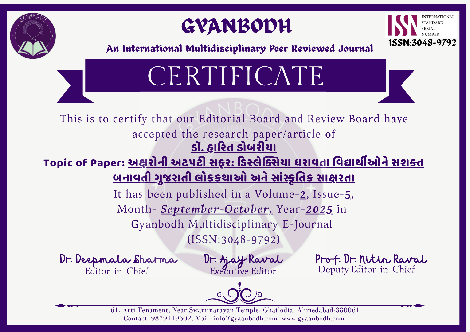 અક્ષરોની અટપટી સફર: ડિસ્લેક્સિયા ધરાવતા વિદ્યાર્થીઓને સશક્ત બનાવતી ગુજરાતી લોકકથાઓ અને સાંસ્કૃતિક સાક્ષરતા |