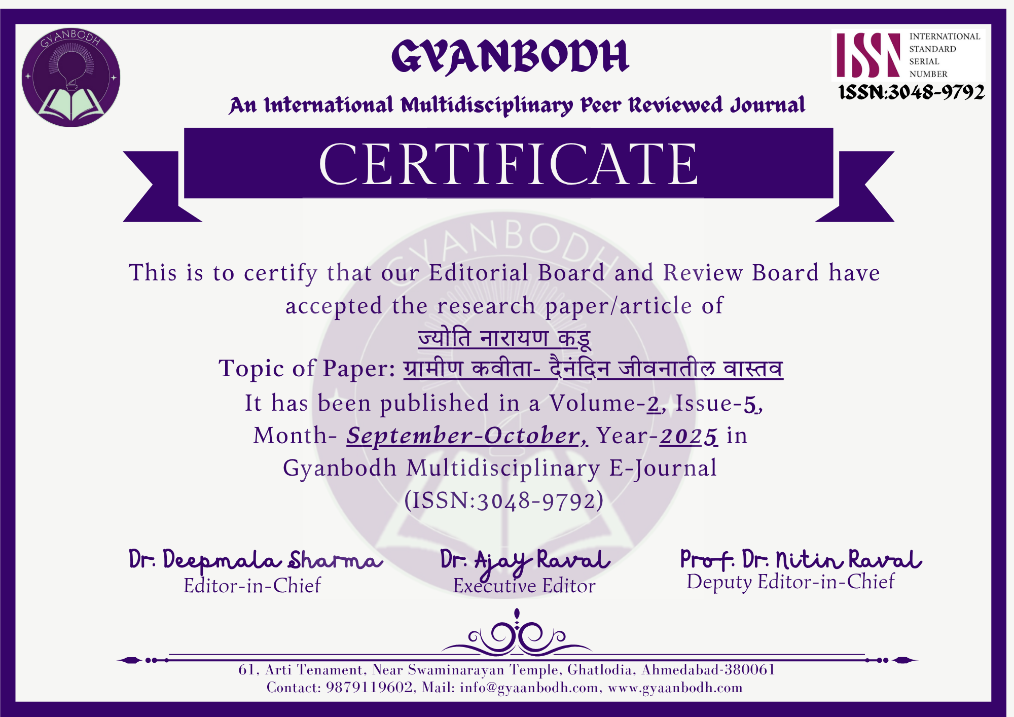 ग्रामीण कवीता- दैनंदिन जीवनातील वास्तव |