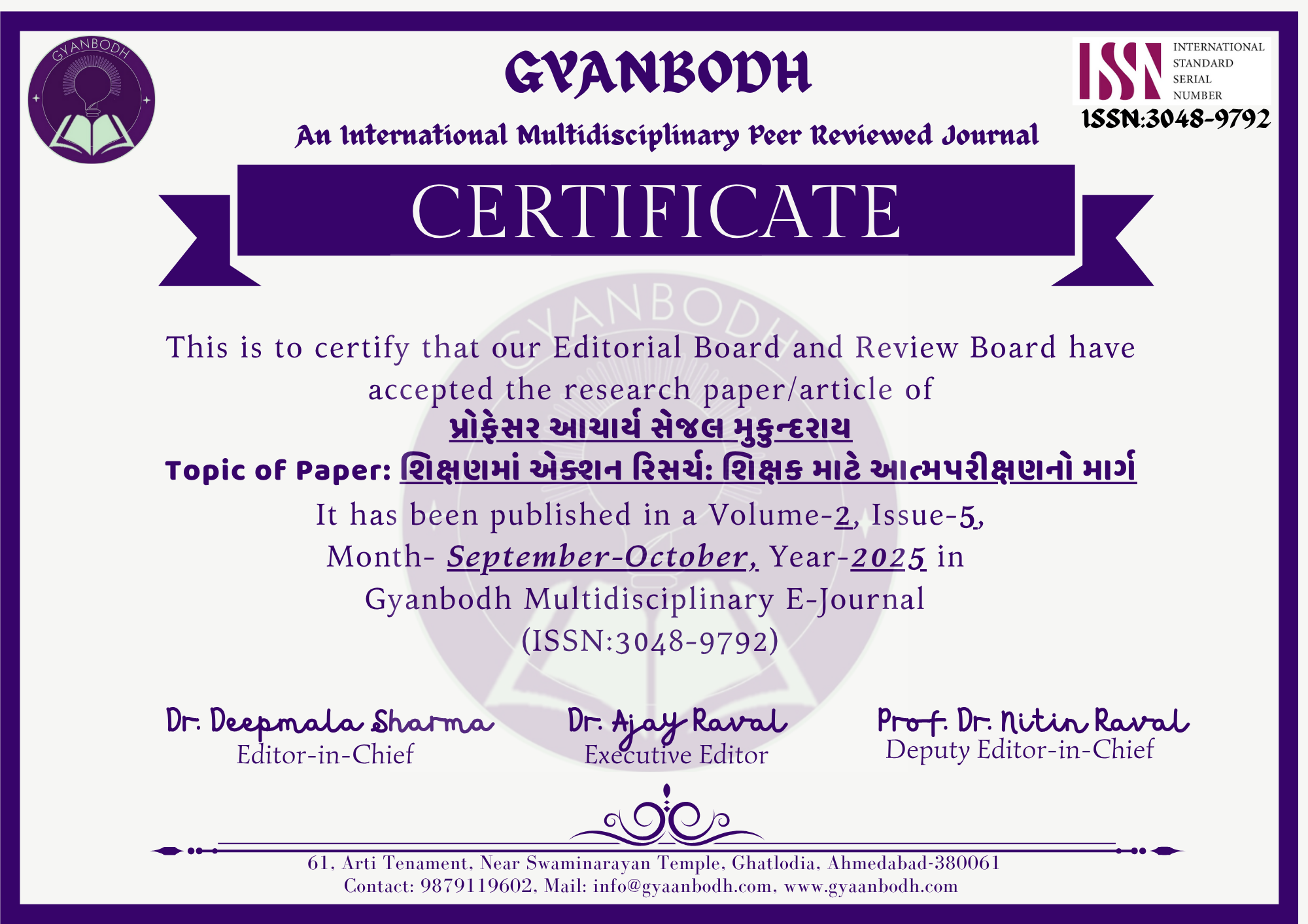 શિક્ષણમાં એક્શન રિસર્ચ: શિક્ષક માટે આત્મપરીક્ષણનો માર્ગ |