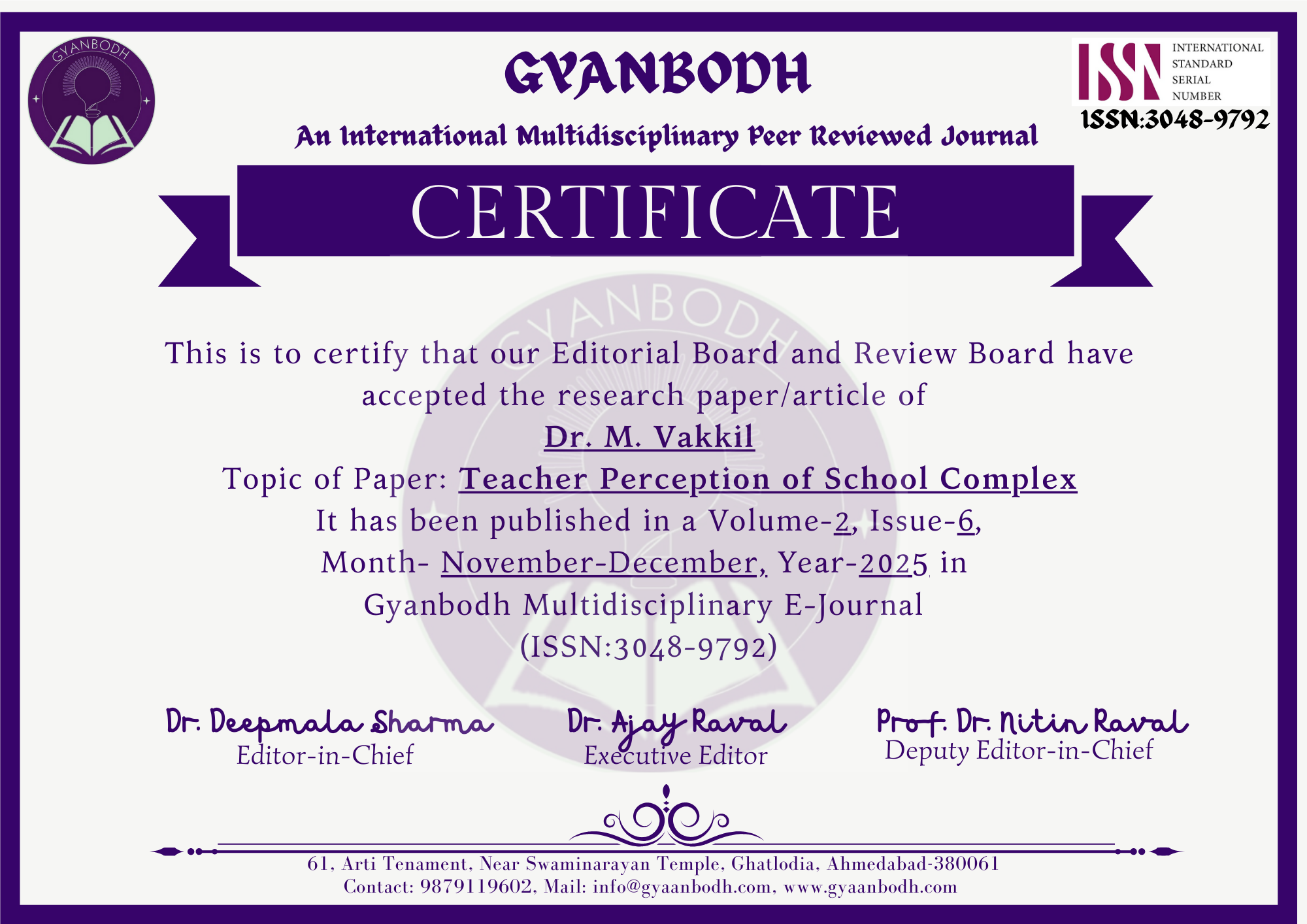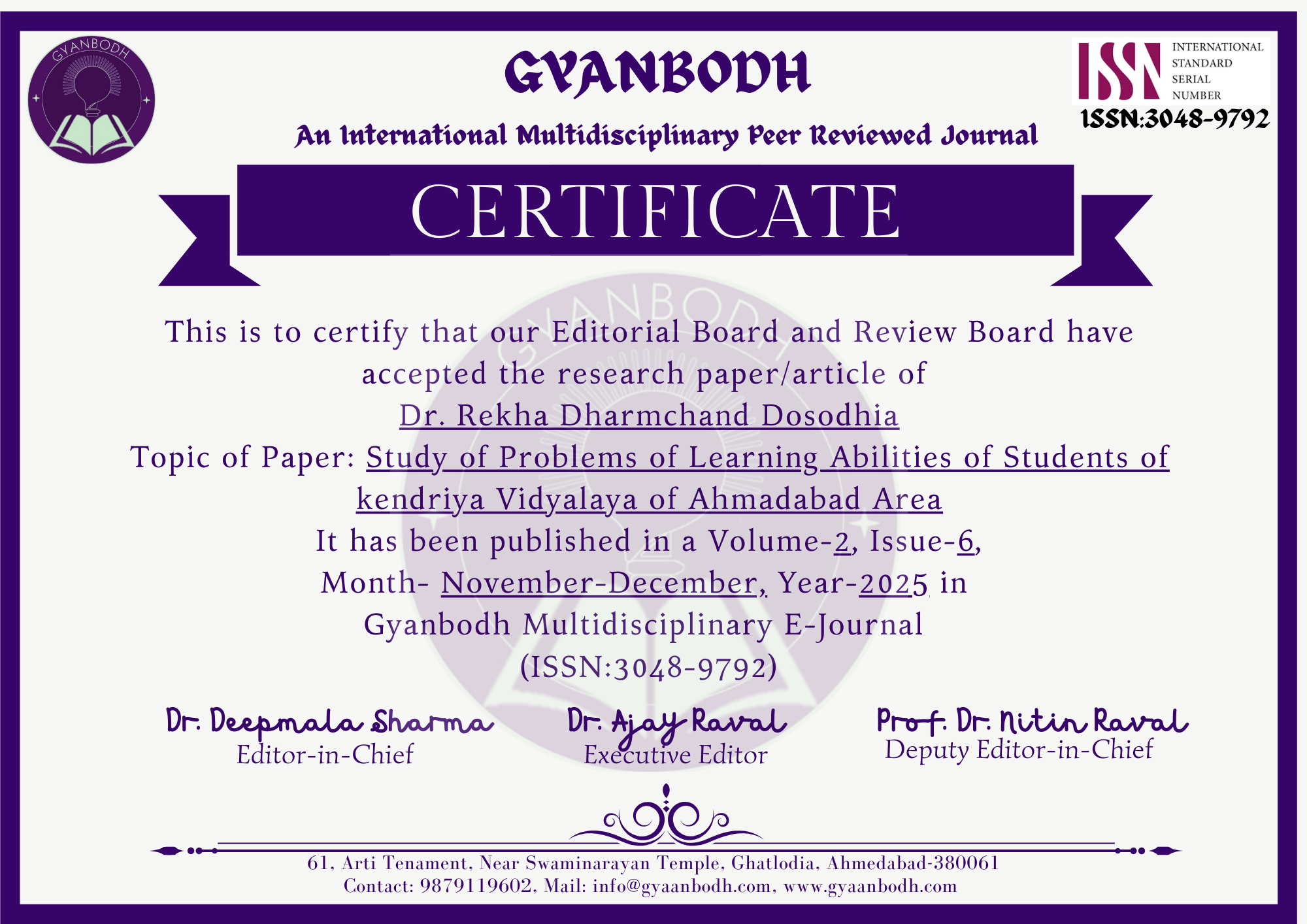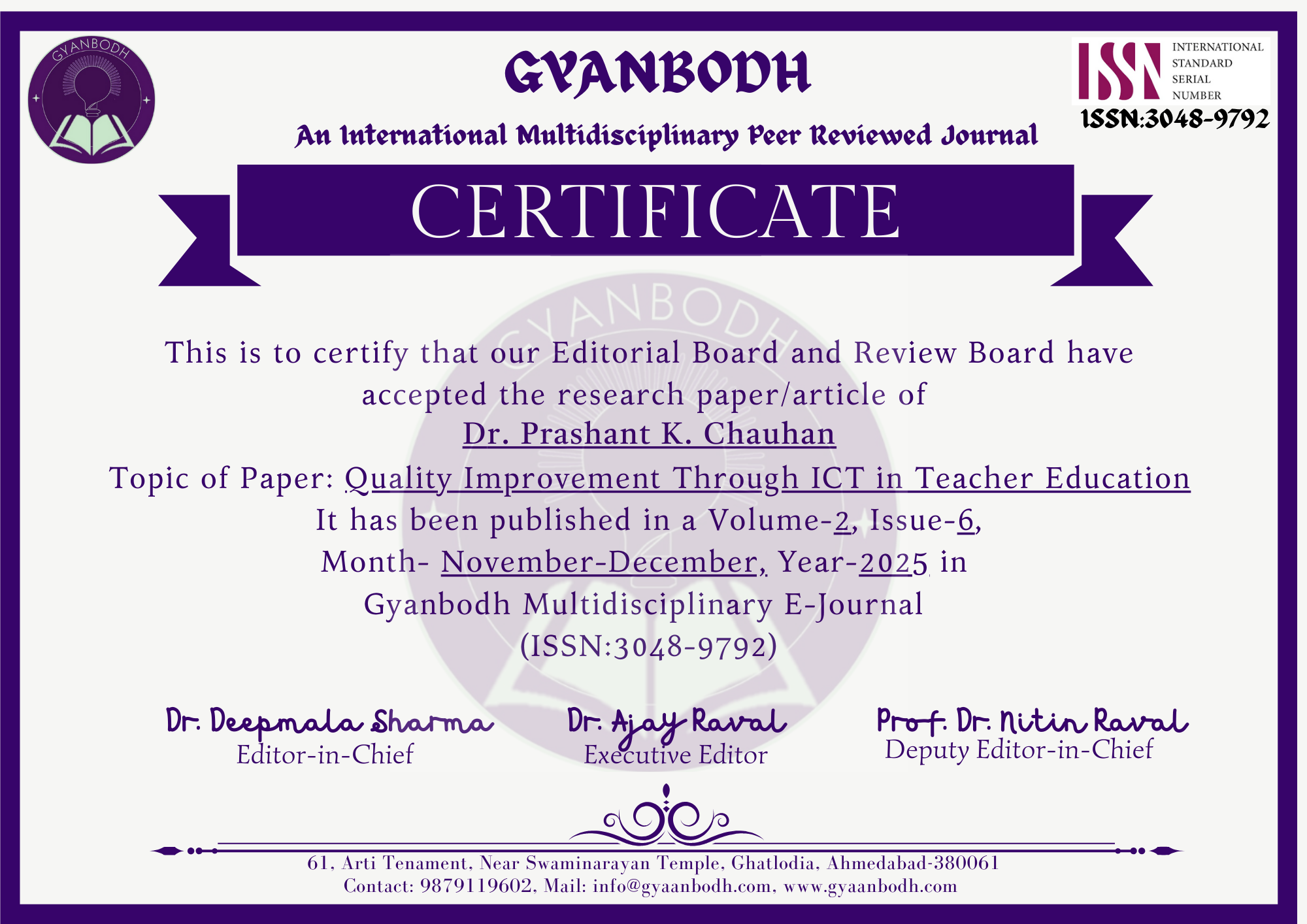 Dr. Prashant K. Chauhan & Dr. Vipula V. Vaghela |