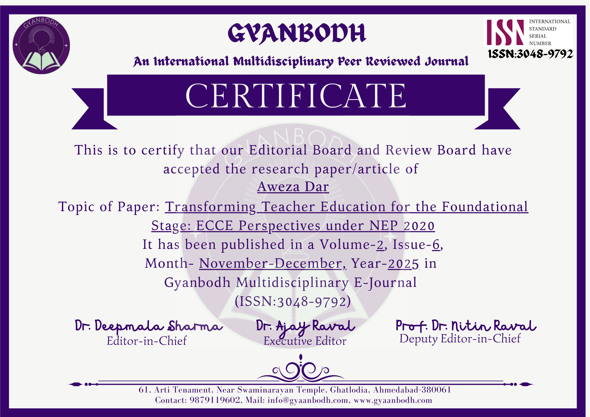 Transforming Teacher Education for the Foundational Stage: ECCE Perspectives under NEP 2020 |