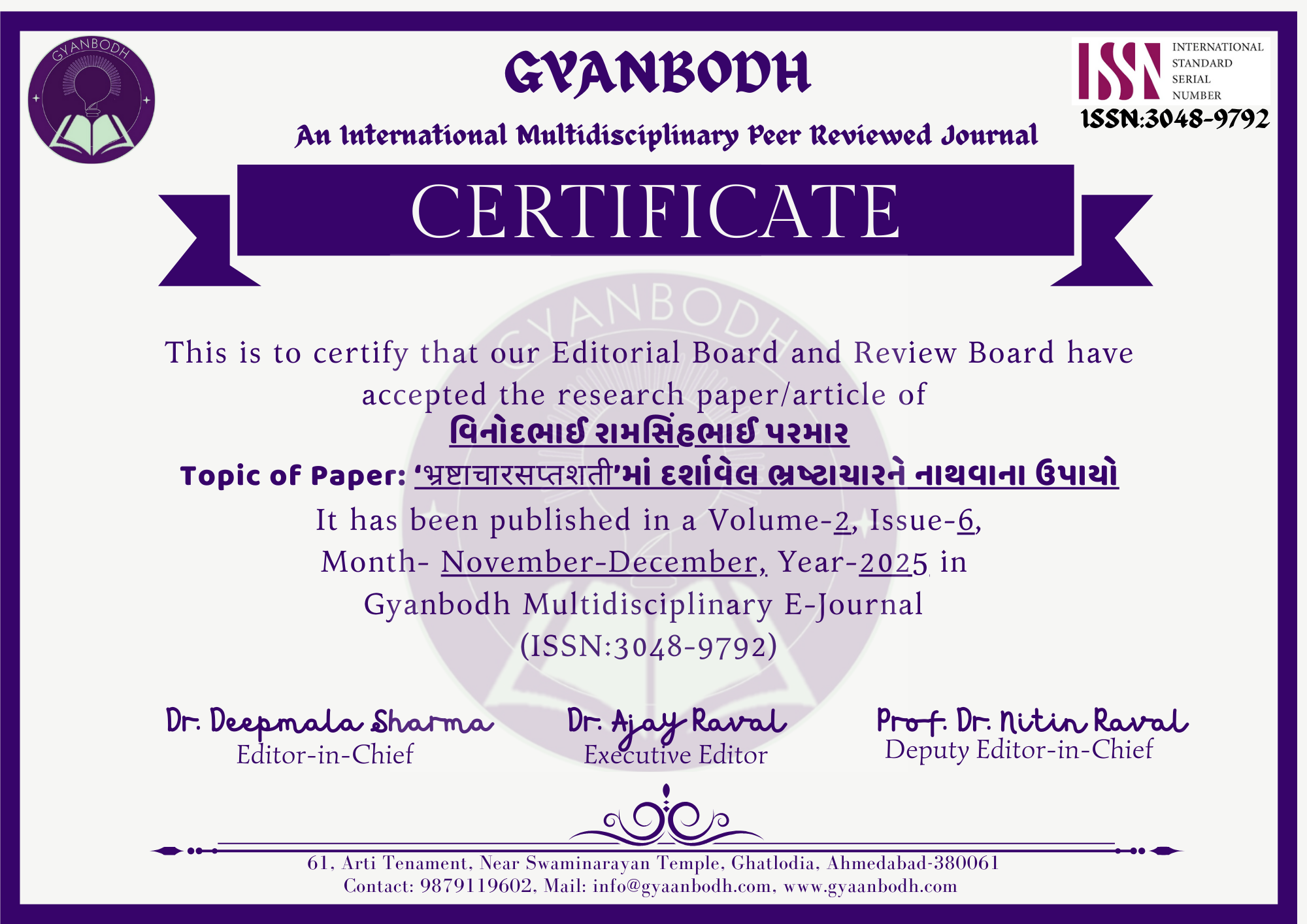 ગોહેલ યાજ્ઞિક ધીરજલાલ & ડૉ. જયવીર પી. પંડ્યા |